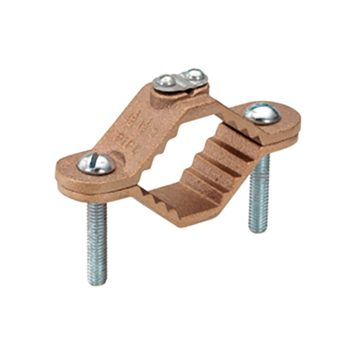Bridgeport® Ground Clamp, 1-1/4 to 2 in Pipe, Bare Copper Conductor, 8 to 4 AWG Conductor, Brass, Plain, 4-1/4 in L