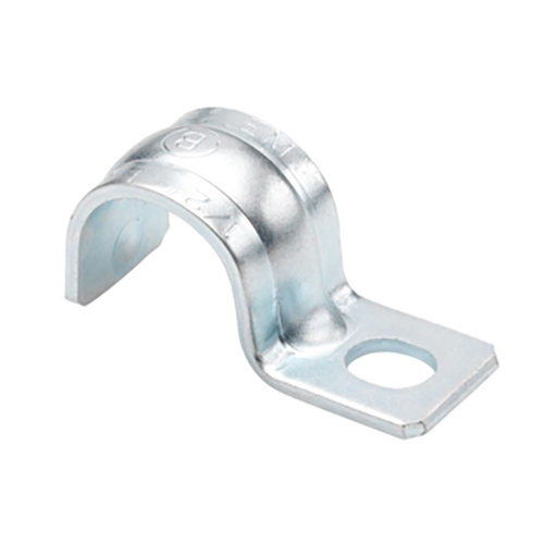 Bridgeport® Pipe Strap, 1-Hole, 2 in, 0.44 in Stud, For Use With: EMT Conduit, Surface Mount, Steel, Zinc Plated, 2.83 in L x 1.25 in W