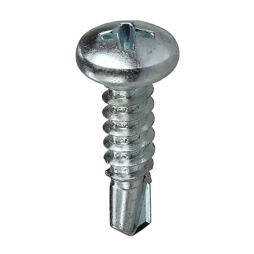 Self Drilling Screw, Pan Head, Phillips Drive, #8 Diameter, 1-1/2 in Length, #2 Point, Steel, Zinc Plated