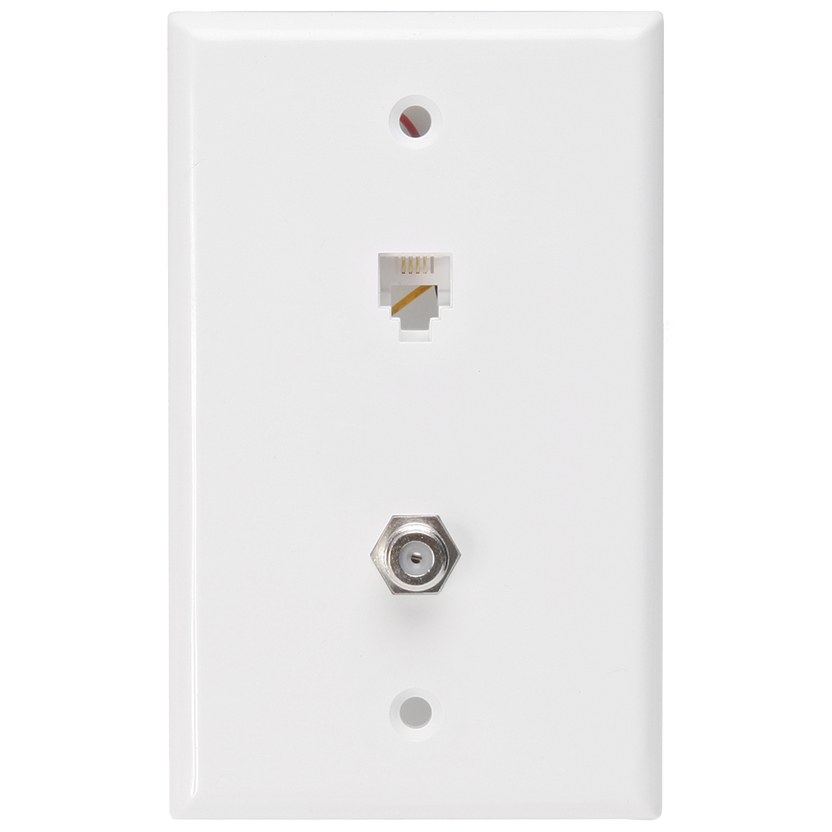 - 1-gang, with (1) 4-conductor / 6-position screw terminal telephone jack and (1) F-connector