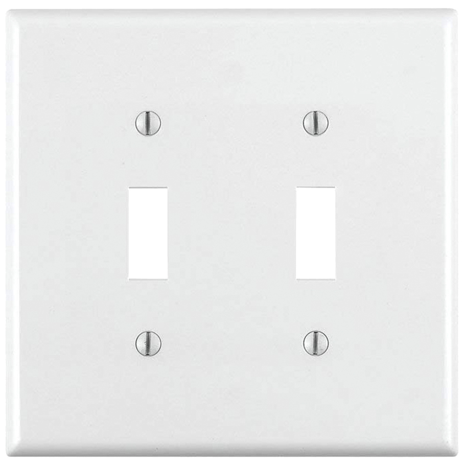 LevitonĀ® Toggle Wallplate, 2-Gang, Standard Size, Device Mount, Nylon, White, Smooth Finish