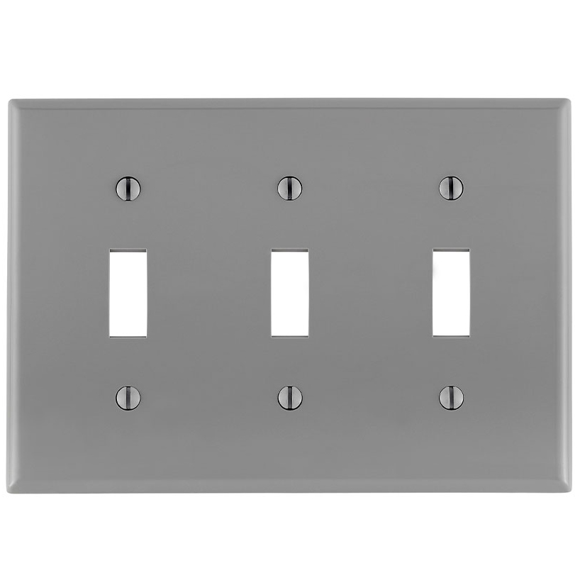 LevitonĀ® Toggle Wallplate, 3-Gang, Standard Size, Device Mount, Nylon, Gray, Smooth Finish