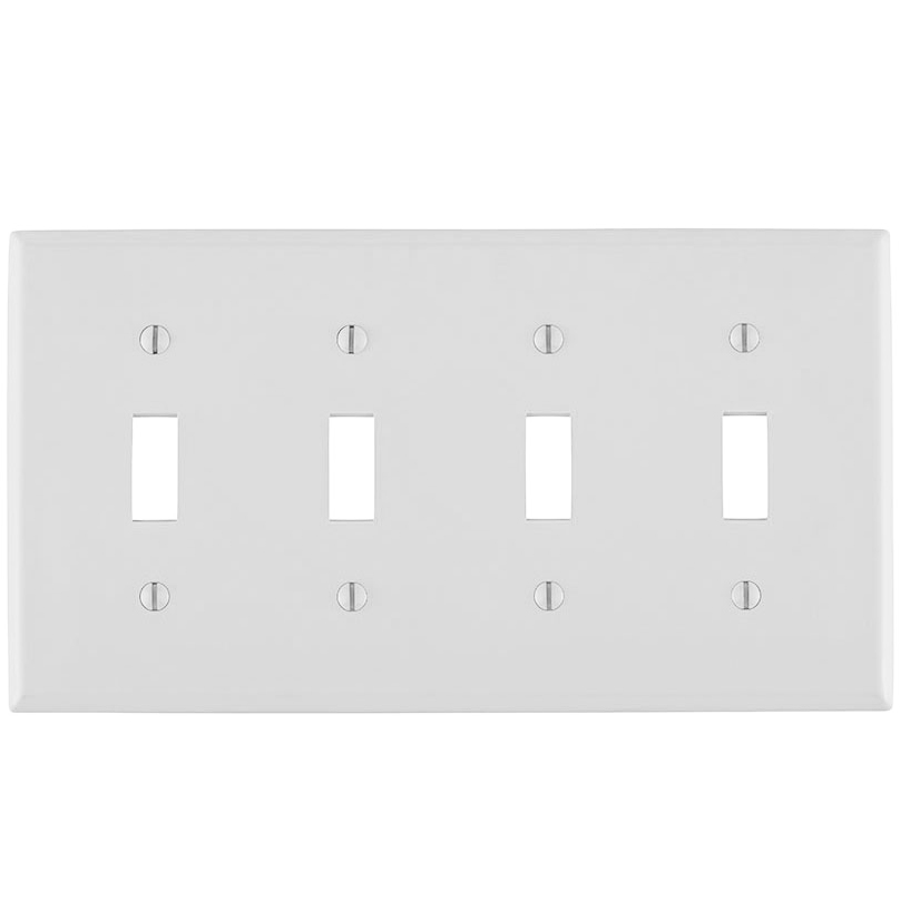 LevitonĀ® Toggle Wallplate, 4-Gang, Standard Size, Device Mount, Nylon, White, Smooth Finish