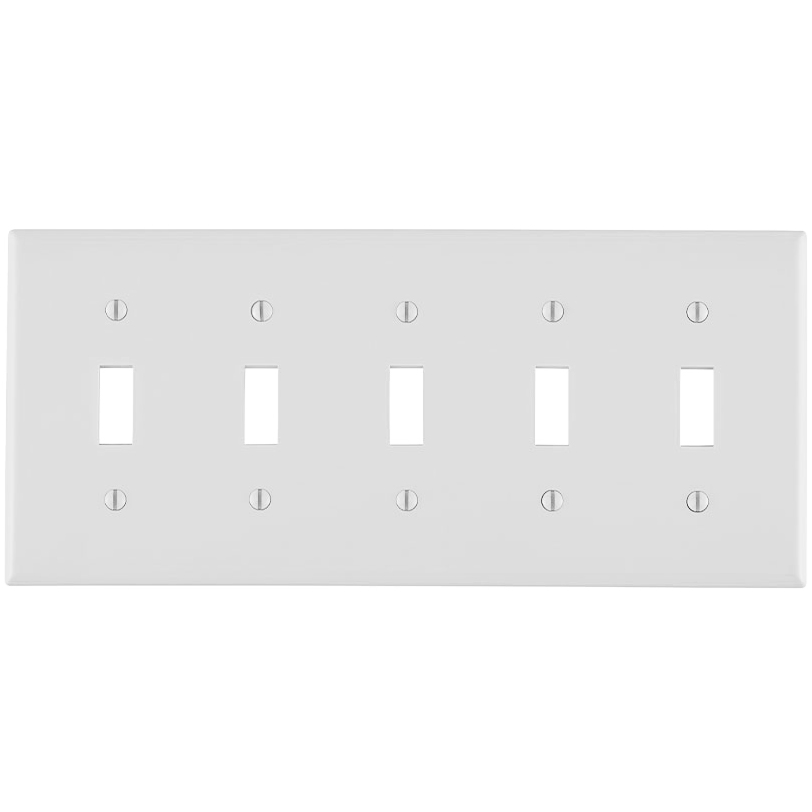 LevitonĀ® Toggle Wallplate, 5-Gang, Standard Size, Device Mount, Nylon, White, Smooth Finish