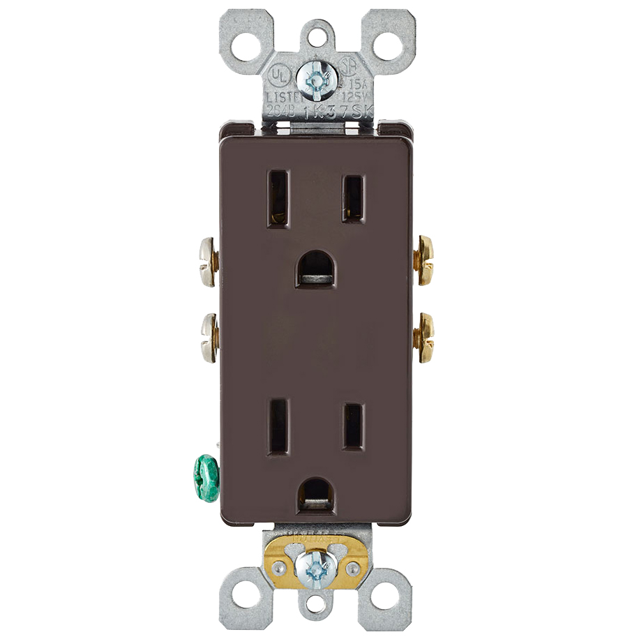 Leviton® Decora® Straight Blade Receptacle, Duplex Self-Grounding, 125 VAC, 15 A, 2 Poles, 3 Wires, NEMA 5-15R, Commercial Grade, -40 to 60 deg C, Quickwire/Push-In/Side Wired Terminal, Thermoplastic, Mahogany, 4.2 in H x 1.31 in W x 0.98 in D