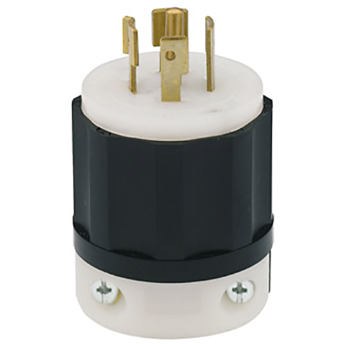 Leviton® Black & White® Locking Plug, 3 Phase Grounding Cable Mount, 277/480 VAC, 20 A, 5 hp, 4 Poles, 5 Wires, NEMA L22-20P, Industrial Grade, 0.595 to 0.895 in Cord Dia, -40 to 60 deg C, Screw Terminal, Nylon, Black/White, 2.08 Dia x 2.47 in L