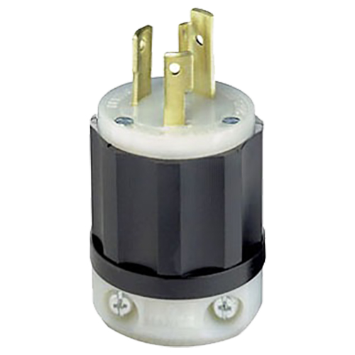 Leviton® Black & White® Locking Plug, 1 Phase Grounding Cable Mount, 250 VAC, 30 A, 2 hp, 2 Poles, 3 Wires, NEMA L6-30P, Industrial Grade, 0.385 to 0.86 in Cord Dia, -40 to 60 deg C, Screw Terminal, Nylon, Black/White, 2.08 Dia x 2.47 in L