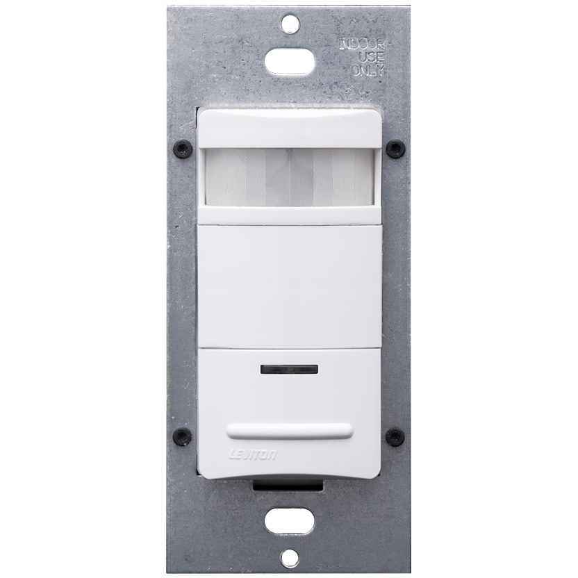 Leviton® Decora® Occupancy Sensor, 1 Pole Low-Profile Photocell Controlled Single Relay, 120/230/277 VAC, 100/280 mW, PIR Sensor, 2100 sq-ft Coverage, 180 deg Viewing, 30 sec to 20 min Delay, Fluorescent/Incandescent Lamp, 50/60 Hz Response, Manual ON/Automatic OFF Control Output, Wall Mount, 0 to 50 deg C, White, 46 in H x 1.75 in W x 1.83 in D