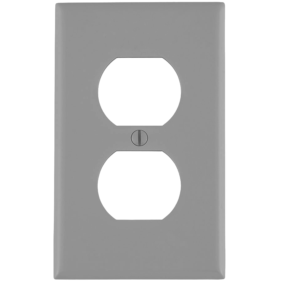 LevitonĀ® Duplex Receptacle Wallplate, 1-Gang, Standard Size, Device Mount, Nylon, Gray, Smooth Finish