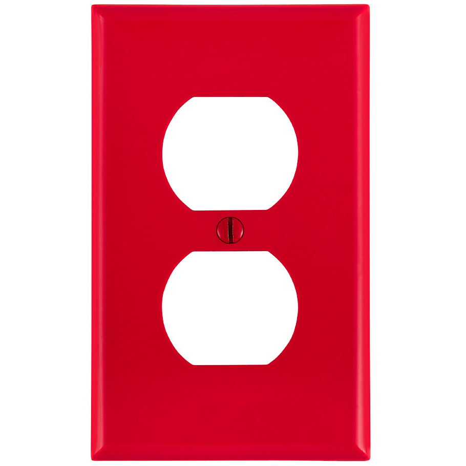 LevitonĀ® Duplex Receptacle Wallplate, 1-Gang, Standard Size, Device Mount, Nylon, Red, Smooth Finish