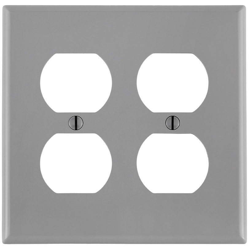 LevitonĀ® Duplex Receptacle Wallplate, 2-Gang, Standard Size, Device Mount, Nylon, Gray, Smooth Finish