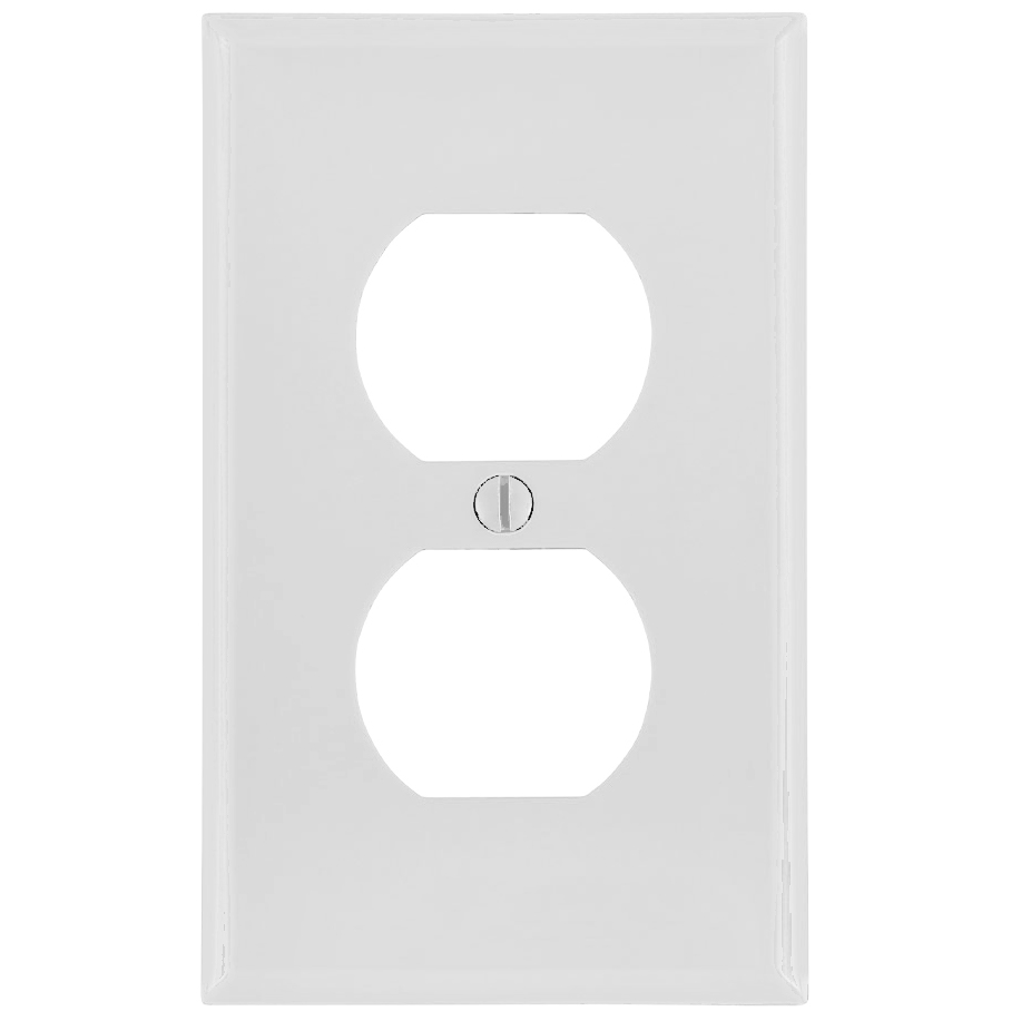 LevitonĀ® Duplex Receptacle Wallplate, 1-Gang, Standard Size, Device Mount, Plastic, White, Smooth Finish