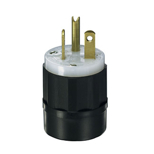 Leviton® Black & White® Straight Blade Plug, Cable Mount Grounding, 250 VAC, 20 A, 2 Poles, 3 Wires, NEMA 6-20P, Industrial Grade, 0.25 to 0.685 in Cord Dia, -40 to 60 deg C, Nylon, Black/White, 1.53 in Dia x 1.98 in H