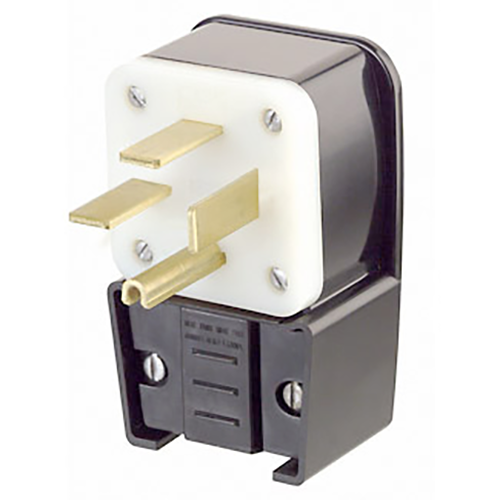 Leviton® Black & White® Straight Blade Plug, 3 Phase Angled Cable Mount Grounding, 250 VAC, 50 A, 7.5 hp, 3 Poles, 4 Wires, NEMA 15-50P, Industrial Grade, 5/8 to 1-3/8 in Cord Dia, -40 to 60 deg C, Nylon, Black, 4.37 in H x 2.76 in W x 1.89 in D