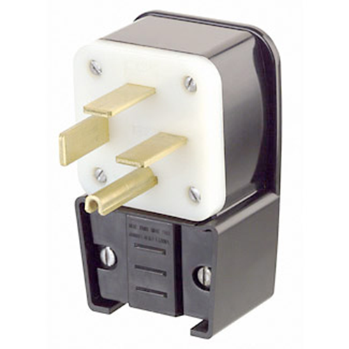 Leviton® Black & White® Straight Blade Plug, 3 Phase Angled Cable Mount Grounding, 250 VAC, 60 A, 10 hp, 3 Poles, 4 Wires, NEMA 15-60P, Industrial Grade, 5/8 to 1-3/8 in Cord Dia, -40 to 60 deg C, Nylon, Black, 4.37 in H x 2.76 in W x 1.89 in D