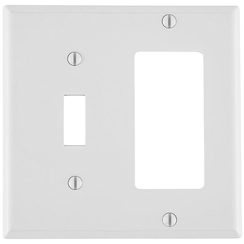 Leviton® Combination Wallplate, 2-Gang (1) Decorator/GFCI (1) Toggle, Standard Size, Device Mount, Nylon, White, Smooth Finish