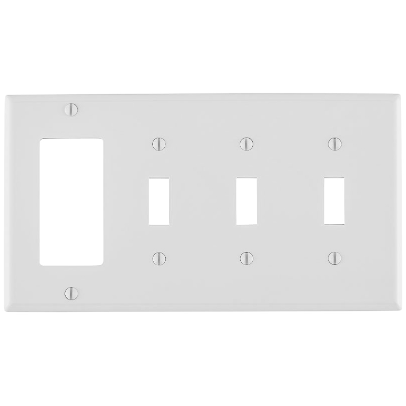 Leviton® Combination Wallplate, 4-Gang (1) Decorator/GFCI (3) Toggle, Standard Size, Device Mount, Nylon, White, Smooth Finish