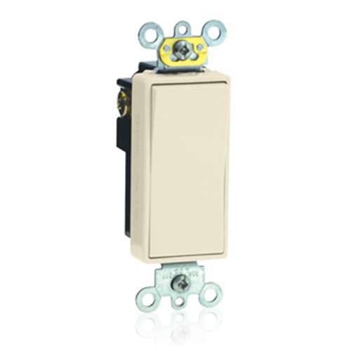 Leviton® Decora Plus™ AC Quiet Switch, Self-Grounding, 120/277 VAC, 20 A, 1 hp, 2 hp, 1 Poles, Maintained/Momentary, Rocker, Surface, Back or Side Wired Terminal, 50000 Operating Cycles, Thermoplastic, Ivory, Environmental Conditions: -40 to 120 deg C Operating Temperature, 46 in H x 1.76 in W x 1.6 in D