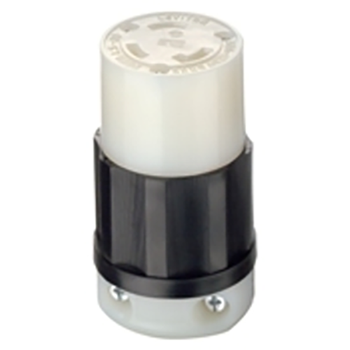 Leviton® Black & White® Locking Connector, 1 Phase Grounding Cable Mount, 125 VAC, 30 A, 2 hp, 2 Poles, 3 Wires, NEMA L5-30R, Industrial Grade, 0.385 to 0.86 in Cord Dia, -40 to 60 deg C, Screw Terminal, Nylon, Black/White, 28 in Dia x 2.47 in L