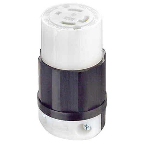 Leviton® Black & White® Locking Connector, 3 Phase Grounding Cable Mount, 125/250 VAC, 30 A, 2 hp, 3 Poles, 4 Wires, NEMA L14-30R, Industrial Grade, 0.595 to 1.15 in Cord Dia, -40 to 60 deg C, Screw Terminal, Nylon, Black/White, 2.22 in Dia x 3.78 in L