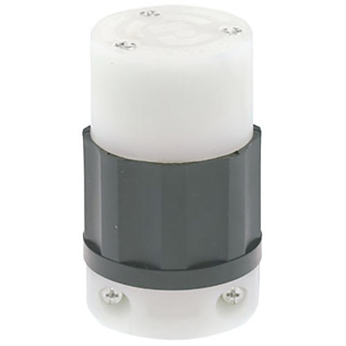 Leviton® Black & White® Locking Connector, 1 Phase Cable Mount Grounding, 250 VAC, 30 A, 2 hp, 2 Poles, 3 Wires, NEMA L6-30R, Industrial Grade, 0.385 to 0.93 in Cord Dia, -40 to 60 deg C, Screw Terminal, Nylon, Black/White, 28 in Dia x 3.53 in L