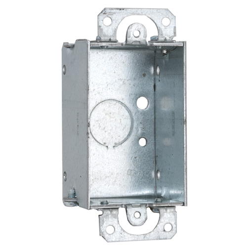 RACO® Switch Box, Gangable, 1 Gang, 3 Knockouts, 1/2 in Conduit Knockouts, Rectangular, Ears Mount, 7.5 cu-in, Steel, Pre-Galvanized, 3 in H x 2 in W x 1-1/2 in D