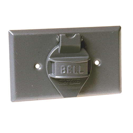 BELL® Self-Closing Flip Cover, Weatherproof, 1 Gang (1) 1.406 in Outlet, Horizontal Mount, Die Cast Aluminum, Powder Coated, Gray, 2-13/16 in H x 4-9/16 in W x 1 in D