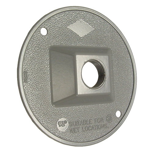 BELLĀ® Weatherproof Round Cluster Cover, 1 Outlet, 1/2 in Outlet, Die Cast Aluminum, Powder Coated, Gray, 4-1/8 in H x 4-1/8 in W x 1.094 in D