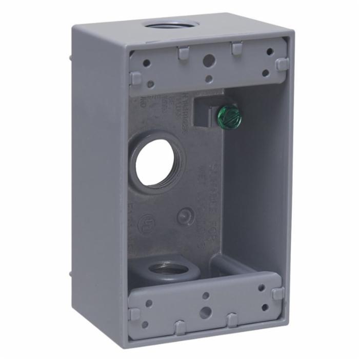 BELLĀ® Weatherproof Outlet Box, 1 Gang, 3 Outlet, 1/2 in Outlet, Threaded Outlet, NEMA 3R, Horizontal/Vertical Mount, 18.3 cu-in, Die Cast Aluminum, Powder Coated, Gray, 4-1/2 in H x 2-3/4 in W x 2 in D
