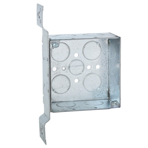 RACO® 4 in Square Bracketed Box, 14 Knockouts, 1/2 in Knockouts, W Bracket, Steel, 1-1/2 in D