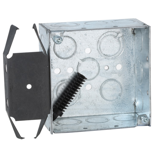 RACO® Square Bracketed Box, 14 Knockouts, 1/2 in Conduit Knockouts, Box-Loc® MS Bracket, 30.3 cu-in, Welded, Steel, Pre-Galvanized, 4 in H x 4 in W x 2-1/8 in D