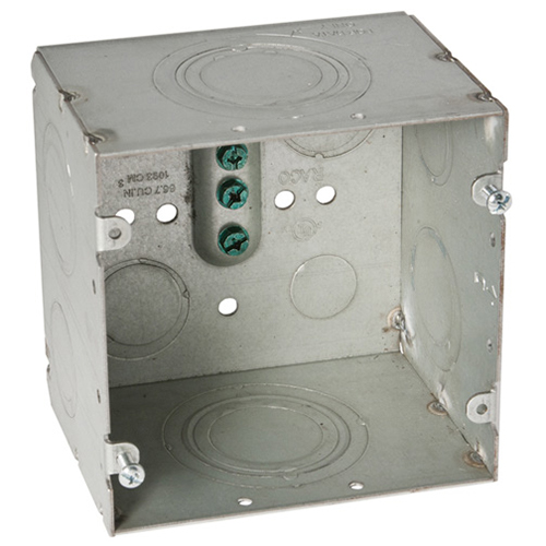 RACO® Square Large Capacity Box, 10 Knockouts, 1/2 to 1-1/4 in Knockouts, Raised Ground, Welded, Steel, Pre-Galvanized, 4-11/16 in H x 4-11/16 in W x 3-1/2 in D