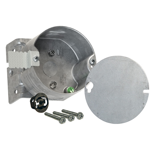 RACO® Ceiling Box, Fan, 3 Knockouts, 1/2 in Knockouts, Pri-Out Cable Entry, 22.3 cu-in, Steel, Pre-Galvanized, 4 in H x 4 in W x 2-1/8 in D