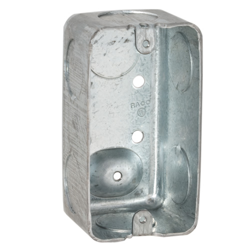 RACO® Handy Box, 7 Knockouts, 3/4 in Conduit Knockouts, Raised Ground, 13 cu-in, Drawn, Steel, Pre-Galvanized, 4 in H x 2 in W x 1-7/8 in D