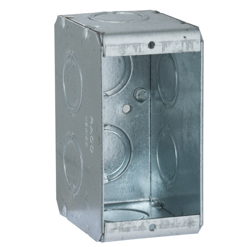 RACO® Masonry Box, Non-Gangable, 1 Outlet, 1 Gang, 8 Knockouts, 1/2 and 3/4 in Conduit Knockouts, 16 cu-in, Welded, Steel, Pre-Galvanized, 3-3/4 in H x 1-31/32 in W x 2-1/2 in D
