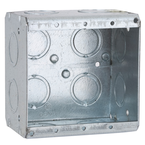 RACO® Non-Gangable Masonry Box, 1 Gang, 8 Knockouts, 1/2 and 3/4 in Knockouts, Welded, Steel, 2-1/2 in D