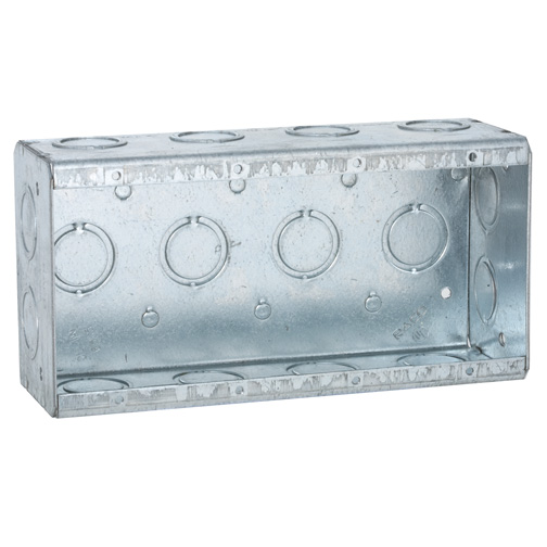 RACO® Masonry Box, Non-Gangable, 4 Outlets, 4 Gang, 19 Knockouts, 1/2 and 3/4 in Conduit Knockouts, 63.5 cu-in, Welded, Steel, Pre-Galvanized, 3-3/4 in H x 7-13/32 in W x 2-1/2 in D