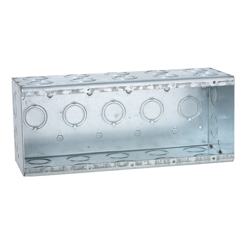 RACO® Masonry Box, Non-Gangable, 5 Outlets, 5 Gang, 40 Knockouts, 1/2 and 3/4 in Conduit Knockouts, 112.3 cu-in, Welded, Steel, Pre-Galvanized, 3-3/4 in H x 9-7/32 in W x 3-1/2 in D
