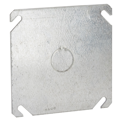 RACO® Flat Cover, Square, 1 Outlet, 1/2 in Outlet, Steel, Pre-Galvanized, 4 in H x 4 in W x 0.06 in D