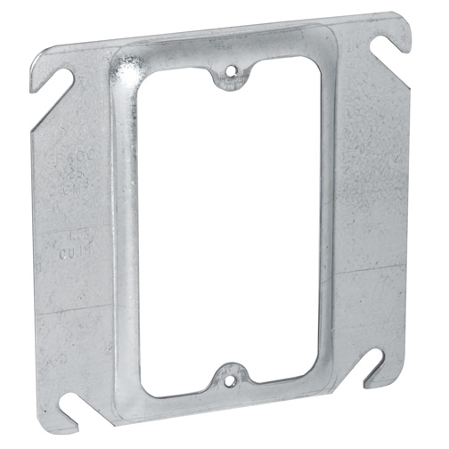 RACO® Raised Device Ring, Square, 1 Gang, 5.5 cu-in, Steel, Pre-Galvanized, 4 in H x 4 in W x 3/4 in D