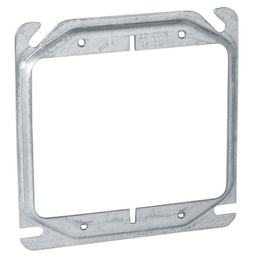 RACO® Raised Device Ring, Square, 2 Gang, 3 cu-in, Steel, Pre-Galvanized, 4 in H x 4 in W x 1/4 in D