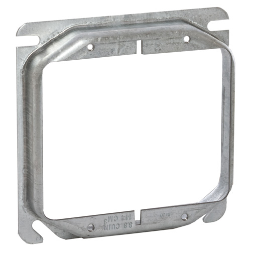 RACO® Raised Device Ring, Square, 2 Gang, 8.8 cu-in, Steel, Pre-Galvanized, 4 in H x 4 in W x 3/4 in D