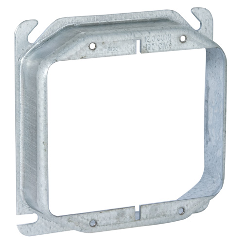 RACO® Raised Device Ring, Square, 2 Gang, 12 cu-in, Steel, Pre-Galvanized, 4 in H x 4 in W x 1 in D