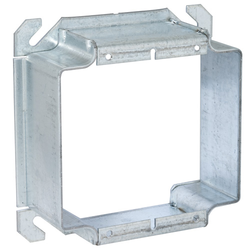 RACO® Raised Device Ring, Square, 2 Gang, 15.5 cu-in, Steel, Pre-Galvanized, 4 in H x 4 in W x 1-1/2 in D