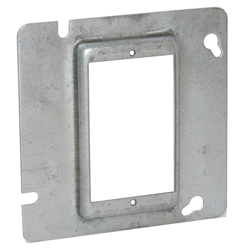RACO® Raised Device Ring, Square, 1 Gang, 3.5 cu-in, Steel, Pre-Galvanized, 4-11/16 in H x 4-11/16 in W x 1/2 in D