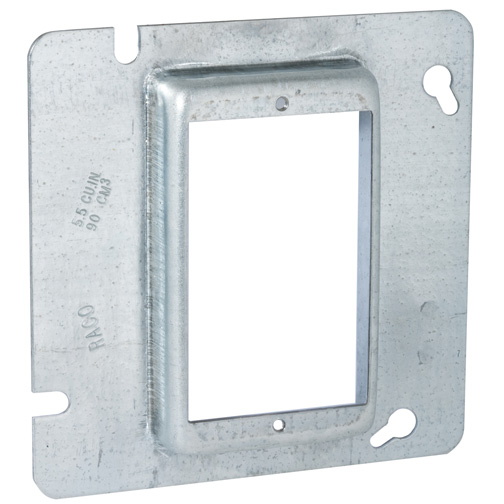 RACO® Raised Device Ring, Square, 1 Gang, 5.5 cu-in, Steel, Pre-Galvanized, 4-11/16 in H x 4-11/16 in W x 3/4 in D