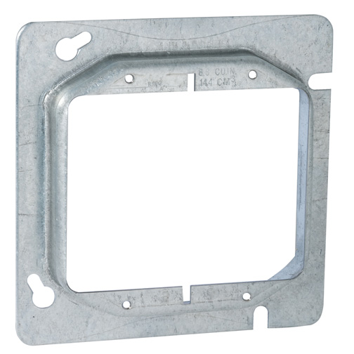 RACO® Raised Device Ring, Square, 2 Gang, 8.8 cu-in, Steel, Pre-Galvanized, 4-11/16 in H x 4-11/16 in W x 3/4 in D