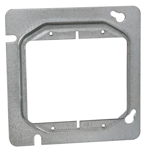 RACO® Raised Device Ring, Square, 2 Gang, 5.5 cu-in, Steel, Pre-Galvanized, 4-11/16 in H x 4-11/16 in W x 1/2 in D