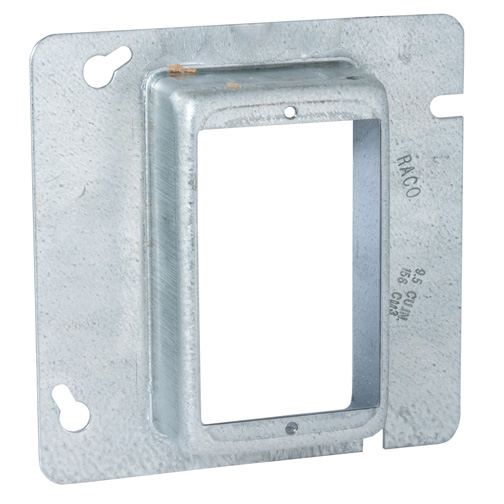 RACO® Raised Device Ring, Square, 1 Gang, 9.5 cu-in, Steel, Pre-Galvanized, 4-11/16 in H x 4-11/16 in W x 1-1/4 in D