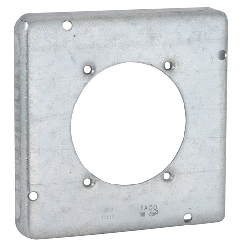 RACO® Square Exposed Work Cover, 1 Outlet, 2.625 in Outlet (30 to 60 A Receptacle), 10.3 cu-in, Steel, Pre-Galvanized, 4-11/16 in H x 4-11/16 in W x 1/2 in D